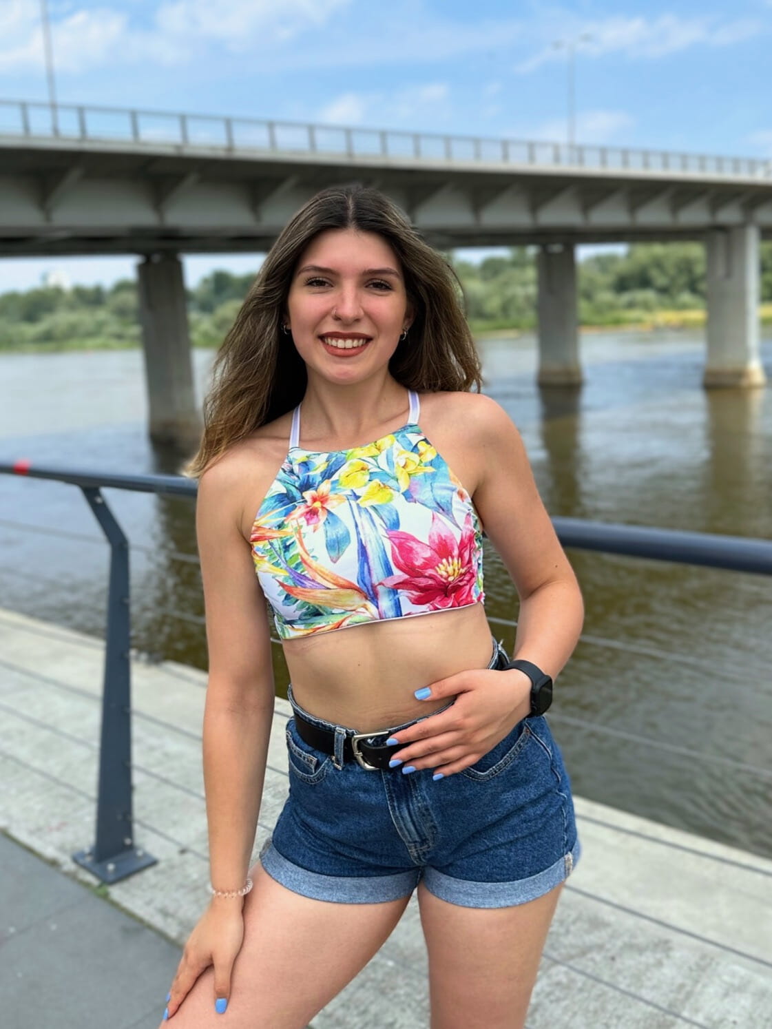 - wiązany pas pod biustem dopasowuje top do odpowiedniego obwodu